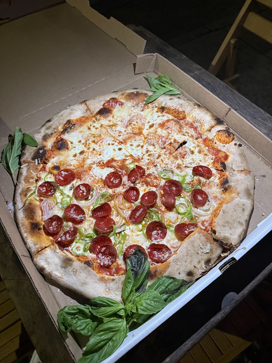 Here, the ritual of sharing is deeply rooted in the experience. Whether it’s a half Margherita, half pepperoni pizza or a delicately folded calzone loaded with thoughtful fillings, each dish unfolds with an unmistakable simplicity and care. Fresh basil and just-right tomato sauce strike a balance between comfort and craftsmanship, making every bite feel personal and unpretentious. Wine glasses are raised gently around wooden tables, adding a touch of ease to the evening, while nearby the calming presence of familiar faces in the staff and local patrons wraps the room in a quietly communal vibe.